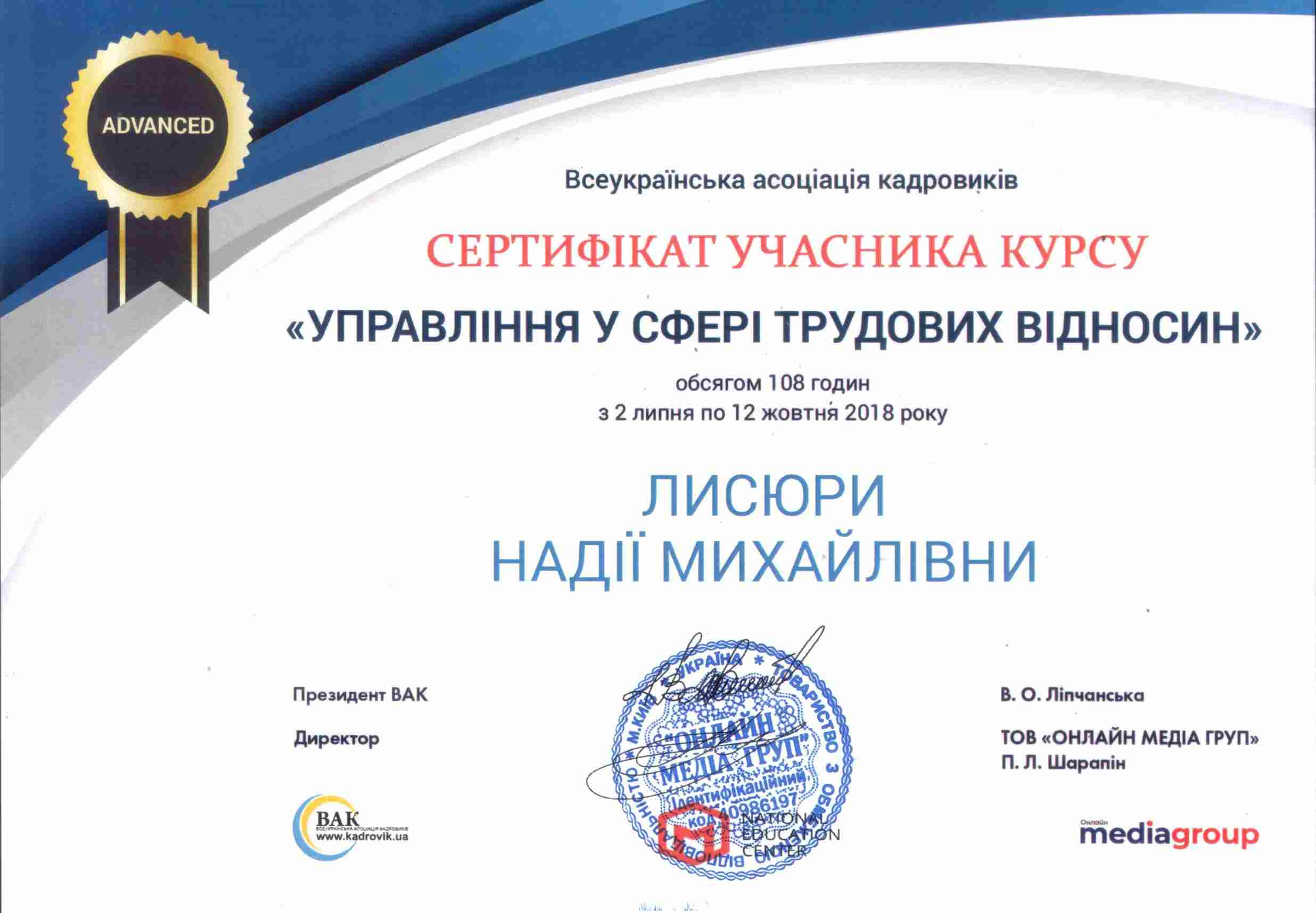 Викладач: Надія Лисюра, спеціаліст-практик,  досконало володіє не тільки знаннями про програмний продукт, а й постійно підтверджує свій рівень новими знаннями у сфері трудового законодавства.